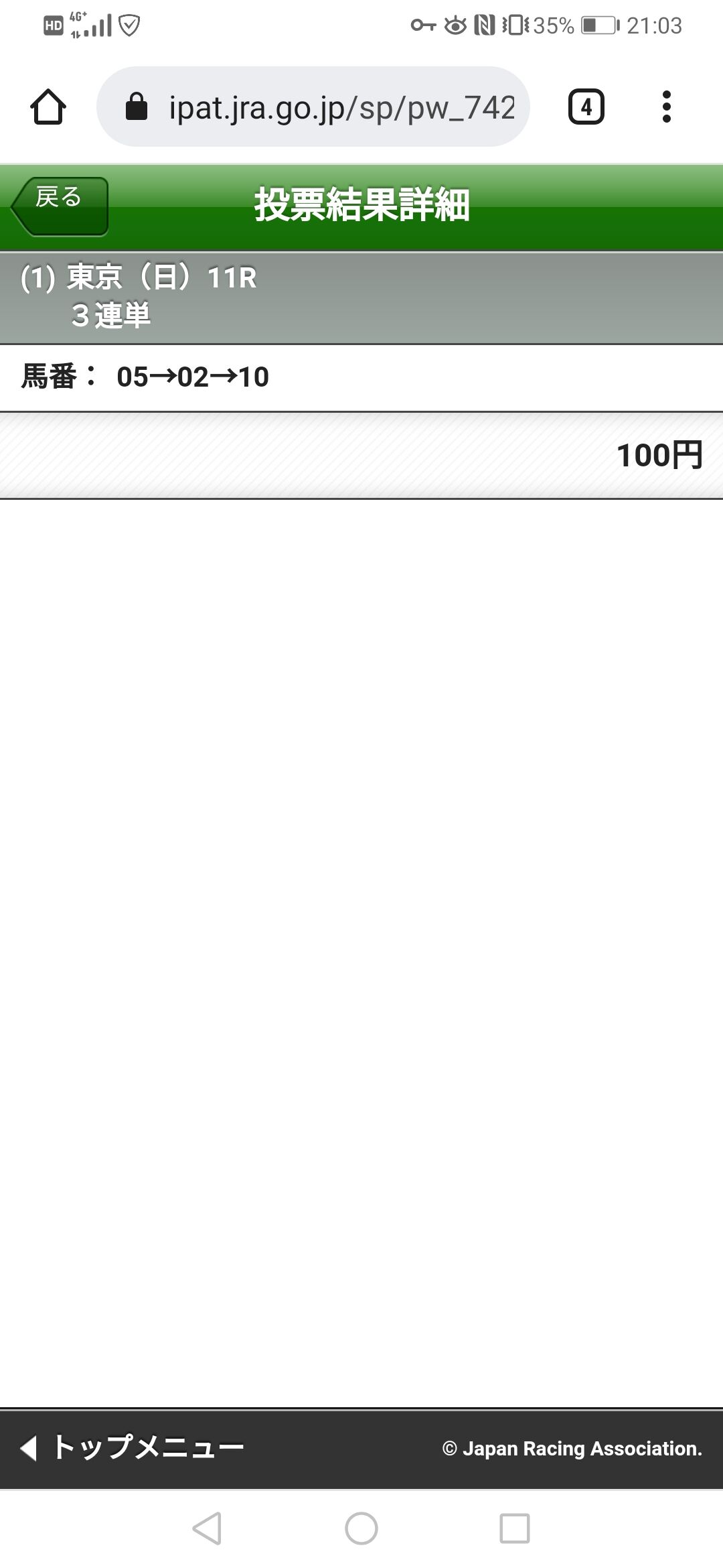 パドック見て3着で買ったわ